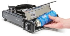 De Camp Bistro 3 is geschikt om mee te nemen tijdens een outdoor avontuur. Dit kooktoestel werkt op het type gascartridge CP-250. Deze gasfles is ook te gebruiken bij lagere temperaturen en grotere hoogten doordat ‘ie isobutaan bevat. Daarnaast hoef je de Camp Bistro 3 niet aan te steken met een aansteker door de ingebouwde piëzo-onsteking. Lekker makkelijk voor onderweg!