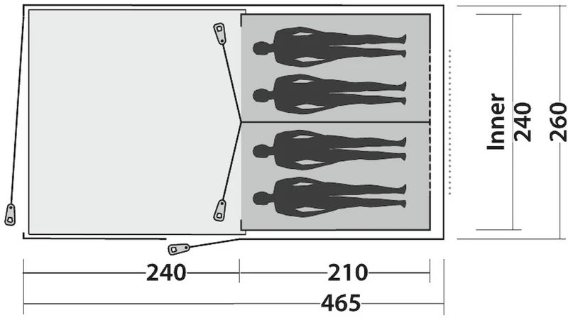 De tent is voorzien van een donkere binnentent. Hierdoor kun je lekker doorslapen, ook als het al licht wordt. Heb je ‘s avonds graag een verlichte tent? In het midden van de tent zit een ophangpunt. Hang hier een hanglamp aan en jouw tent is binnen no time gezellig verlicht. Tot slot is het grondzeil in de voortent afneembaar. Hierdoor maak je hem eenvoudig schoon en houd je jouw tent altijd schoon en fris!