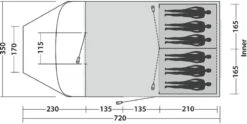 Je loopt deze tent heel eenvoudig binnen door de grote D-vormige deur óf de zijdeur. Je kunt daarnaast de tunneltent naar eigen wens indelen. Vind je het gezellig om met zijn allen in één ruimte te slapen? Of wil je juist liever twee gescheiden slaapplekken? Het is beide mogelijk, dankzij de scheidingswand in de tent.