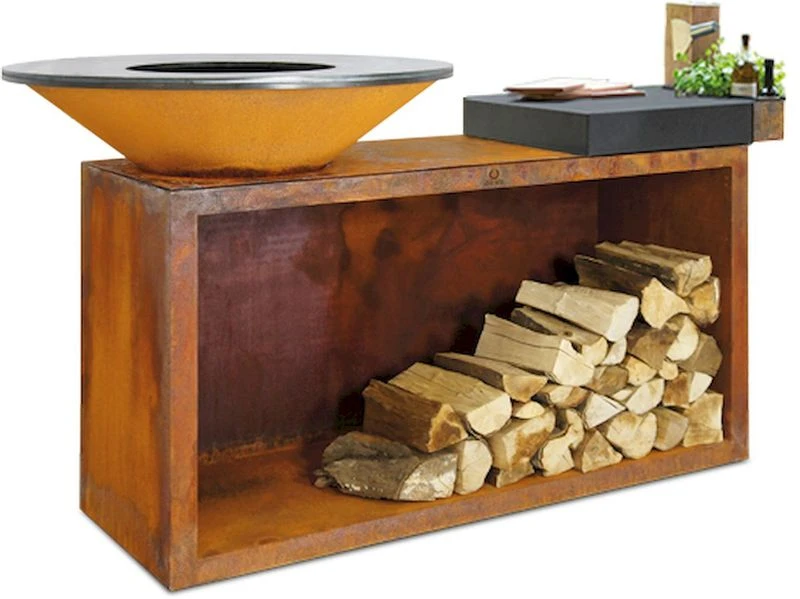 Het Ofyr Island is een alles-in-één kooktoestel dat vervaardigd is van Cortenstaal. Cortenstaal is verweerd staal dat gedurende het gehele jaar buiten kan blijven staan.